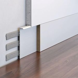 La base del zócalo oculto es un perfil de aluminio resistente y duradero, capaz de soportar alta humedad, fluctuaciones de temperatura y golpes mecánicos, pudiendo durar muchos años sin perder sus propiedades. El perfil puede complementarse con una inserción de MDF o con un canal iluminado con LED.