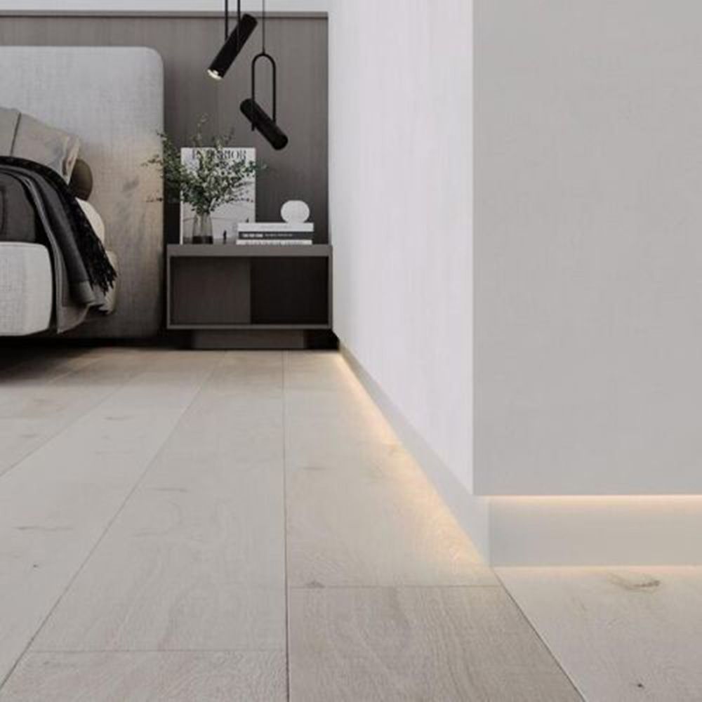 Disimula la unión entre el suelo y la pared, creando un efecto de “pared flotante”. Es posible instalar iluminación LED.
